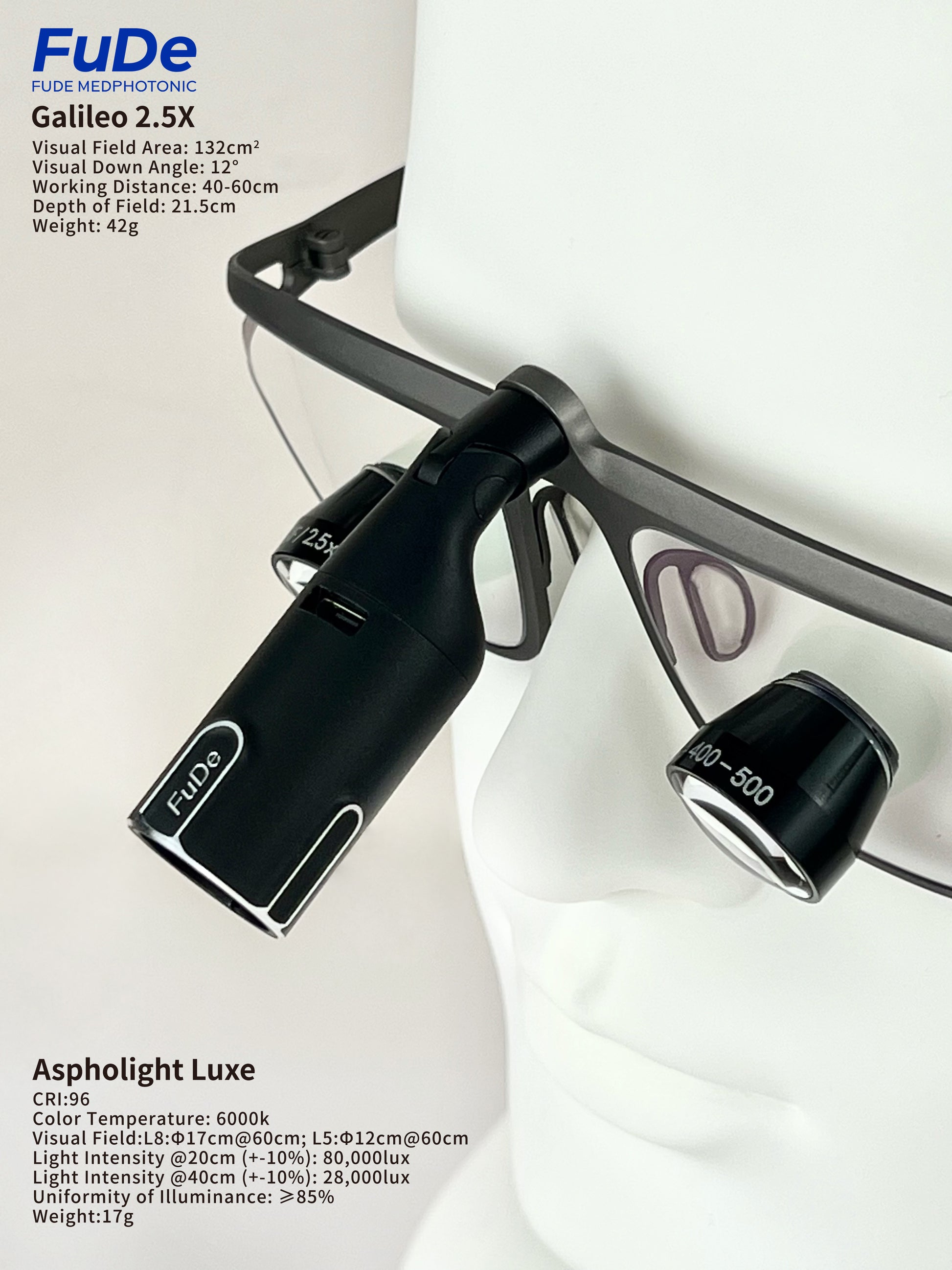lupa de magnificación profesional personalizada de FuDe, diseñada para odontólogos, cirujanos, veterinarios...